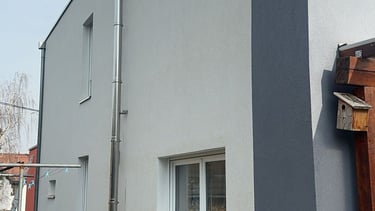 Grâce à des peintures extérieures de qualité et une préparation minutieuse des supports, nous redonnons éclat et caractère à vos murs extérieurs.