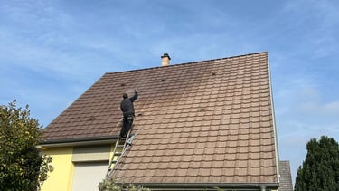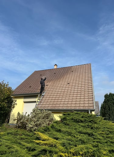 Nous réalisons le démoussage de toiture afin d’éliminer mousses et salissures, de préserver l’étanchéité du toit et de prolonger sa durée de vie.